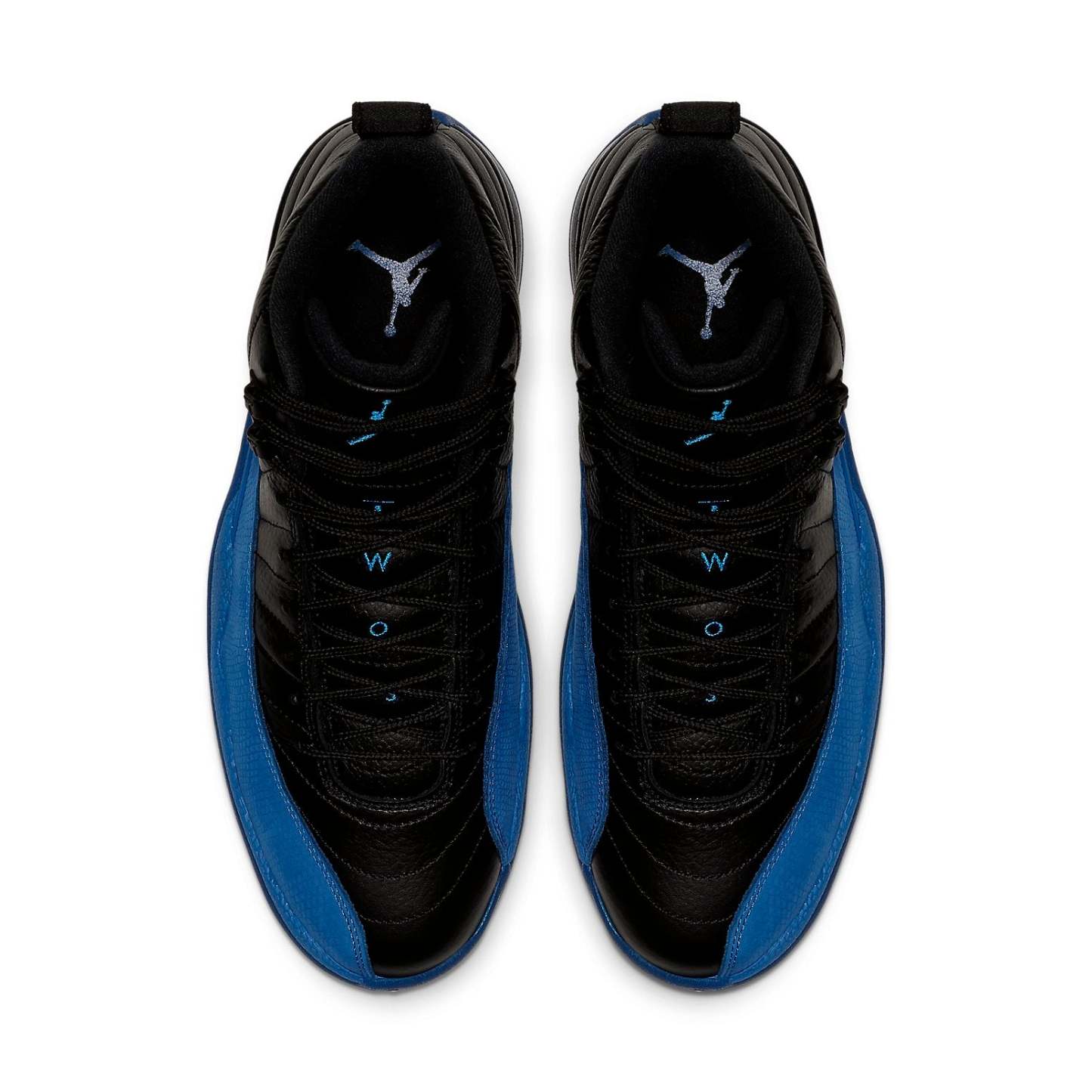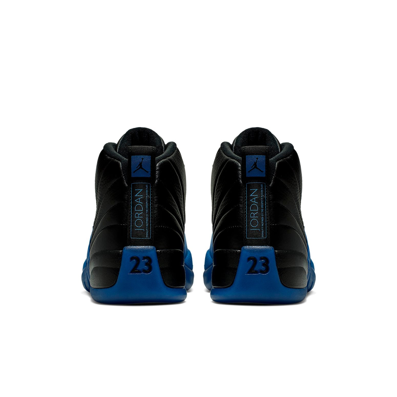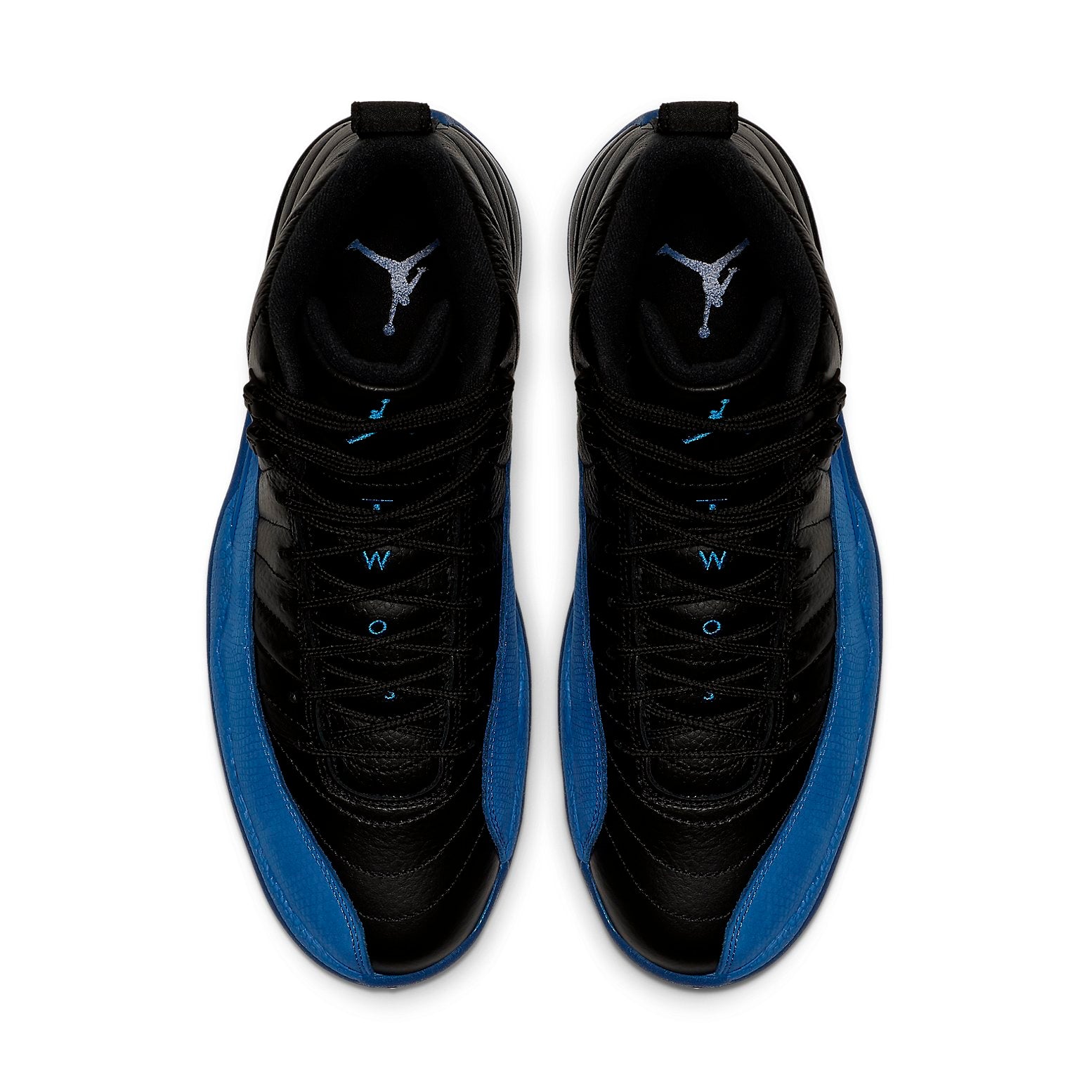Nike Air Jordan 12 Retro Game Royal dressed in a black and Game Royal color scheme. Black rope laces, matching leather tongue with blue accents on the 'Two 3' text and Jumpman logo. Further details includes Jordan branding on the heel tab and heel spine with a black '23' logo on the blue rubber midsole.