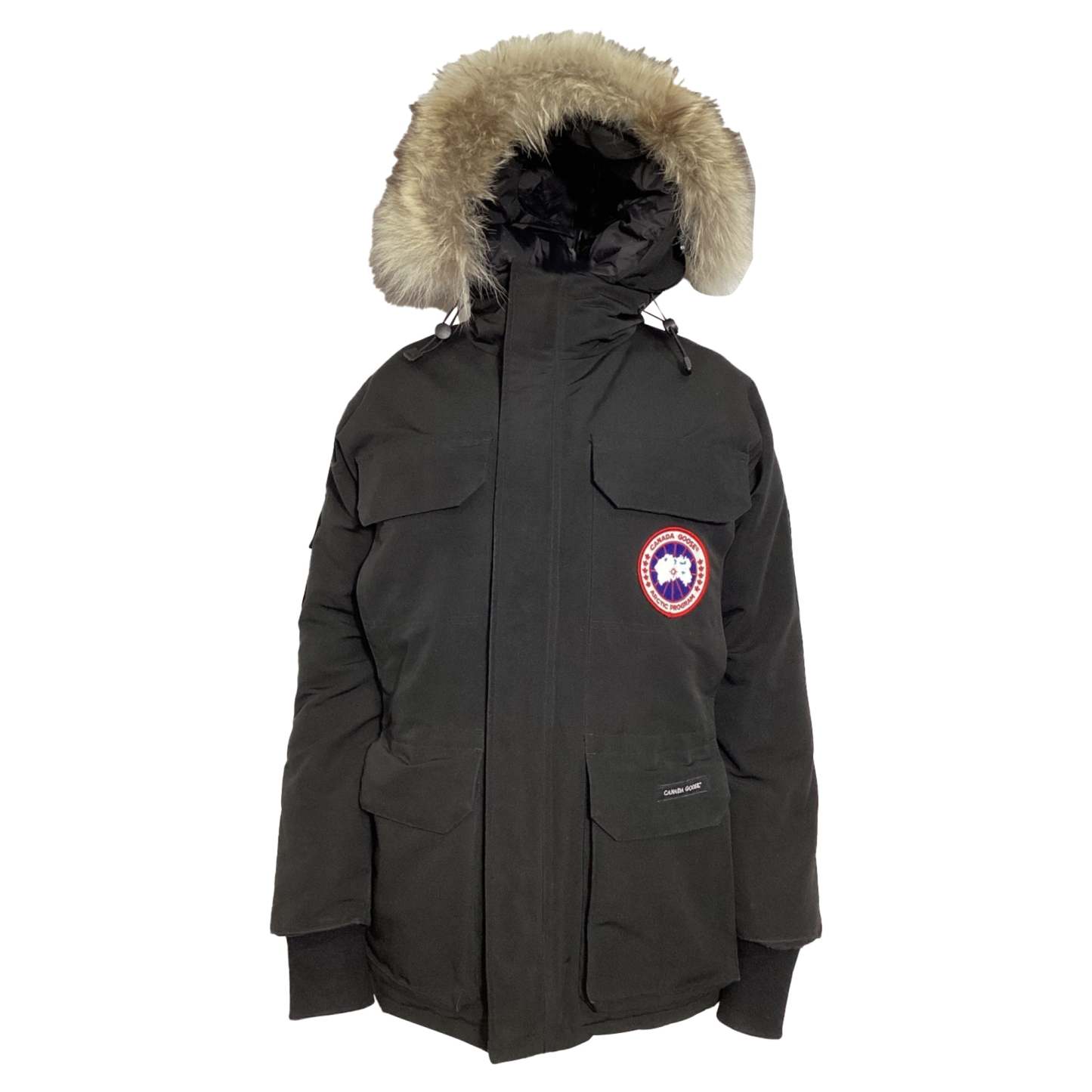 Stay warm and stylish with the Canada Goose Expedition Fur-Trim Down Jacket in durable black nylon. Renowned for its exceptional quality and performance, this jacket is designed to withstand the harshest winter conditions while offering a sleek, urban look. Filled with premium down insulation, it provides superior warmth and comfort, ensuring you stay cozy in the coldest temperatures. Canada Goose Expedition Fur-Trim Down Jacket in Black NylonCondition - Very goodSigns of wear - Lightly used but very well maintained. Small pull thread or light peeling., No visible sign of wear.Packaging - NoneColor - BlackMaterial - NylonSize - EU38/SMeasurements - Chest - 1100mmSKU - NAPPUUSCL459795W