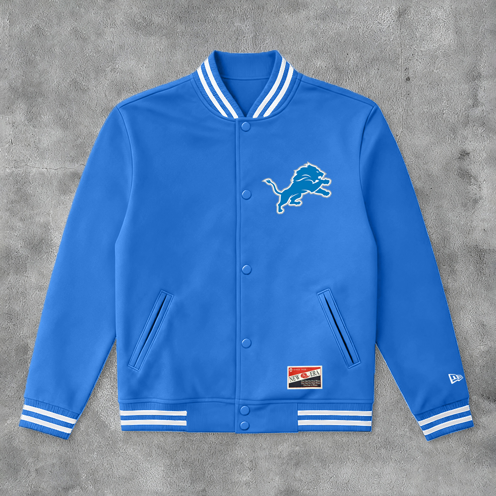 Casual Lions Print Long Sleeve Baseball Jacket