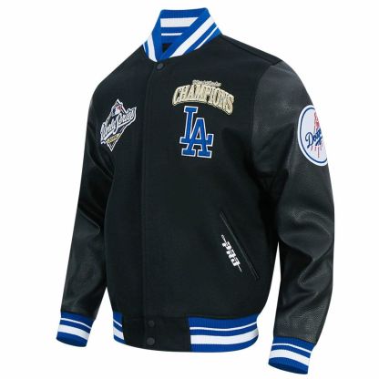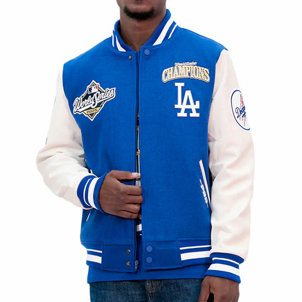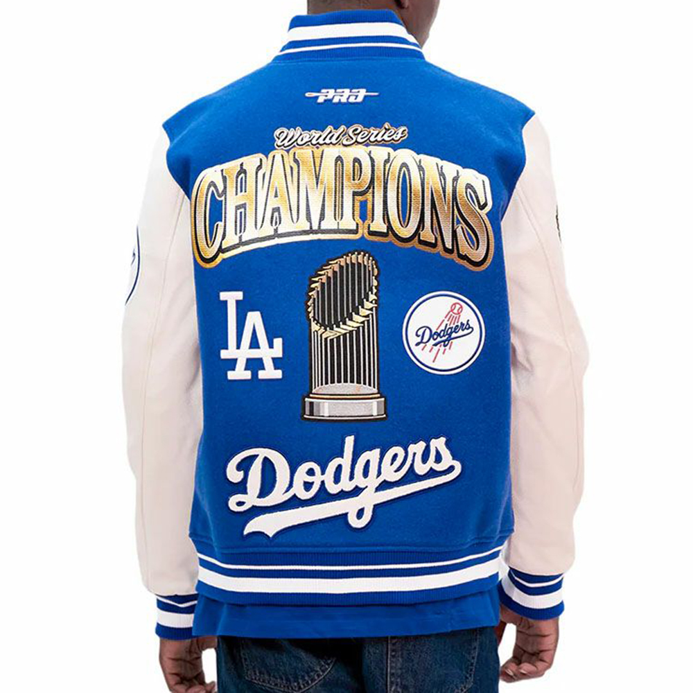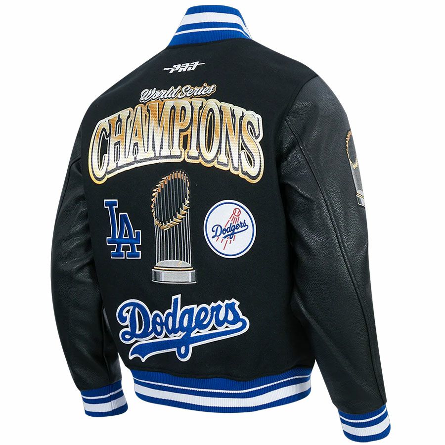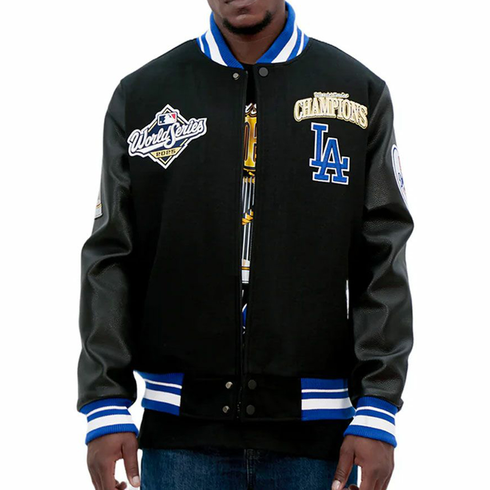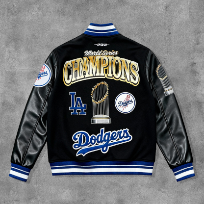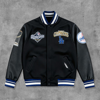 Champion Printed Leather Sleeves Splicing Baseball Jacket