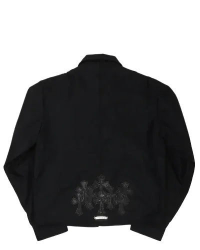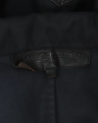 The Chrome Hearts Leather Cross Patch Zip Up Nylon Jacket is a bold fusion of edgy style and luxurious craftsmanship. This standout piece exemplifies Chrome Hearts’ commitment to unique design and exceptional quality, making it a must-have for those who seek to make a statement with their outerwear.