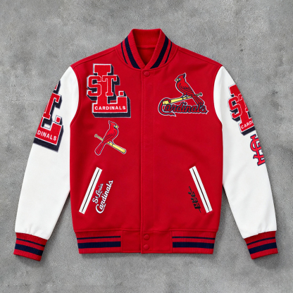 Fashion Cardinals Print Long Sleeve Baseball Jacket