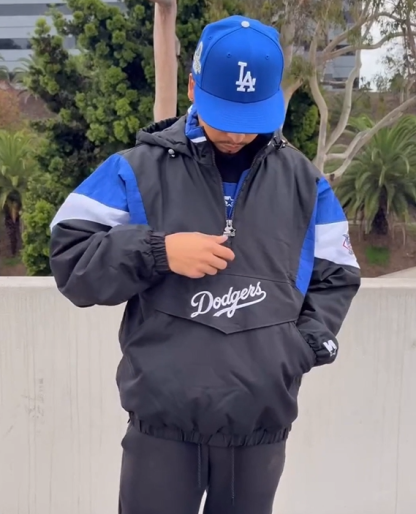 Fashion Team Logo Printed Half Zipper Hooded Jacket