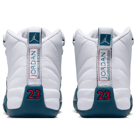 The iconic Air Jordan 12 "French Blue," last seen in 2004, returns in August 2025. This classic colorway features a premium white leather upper, vibrant French Blue mudguard, metallic silver accents, and varsity red heel branding. A must-have for sneakerheads, it retains its original design and color blocking.