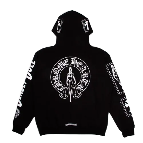 Experience the allure of exclusive fashion with the Chrome Hearts Miami Exclusive Deadly Doll Hoodie. This one-of-a-kind piece blends urban edge with a touch of whimsical artistry, creating a statement that is both bold and unique.