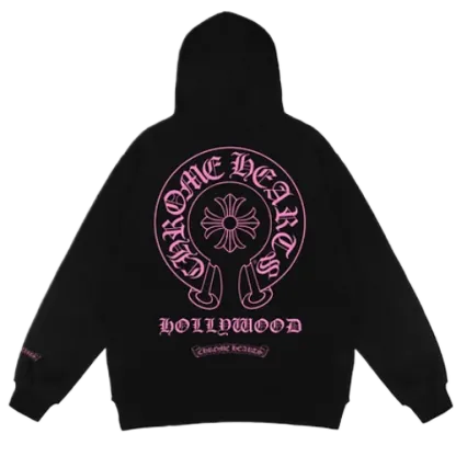 The Chrome Hearts Pink Rare Horse Shoe Hoodie is a unique and eye-catching piece that perfectly encapsulates the brand’s edgy yet luxurious aesthetic. This rare hoodie combines bold design elements with exceptional craftsmanship, making it a must-have for those who appreciate high-end streetwear with a distinctive twist.