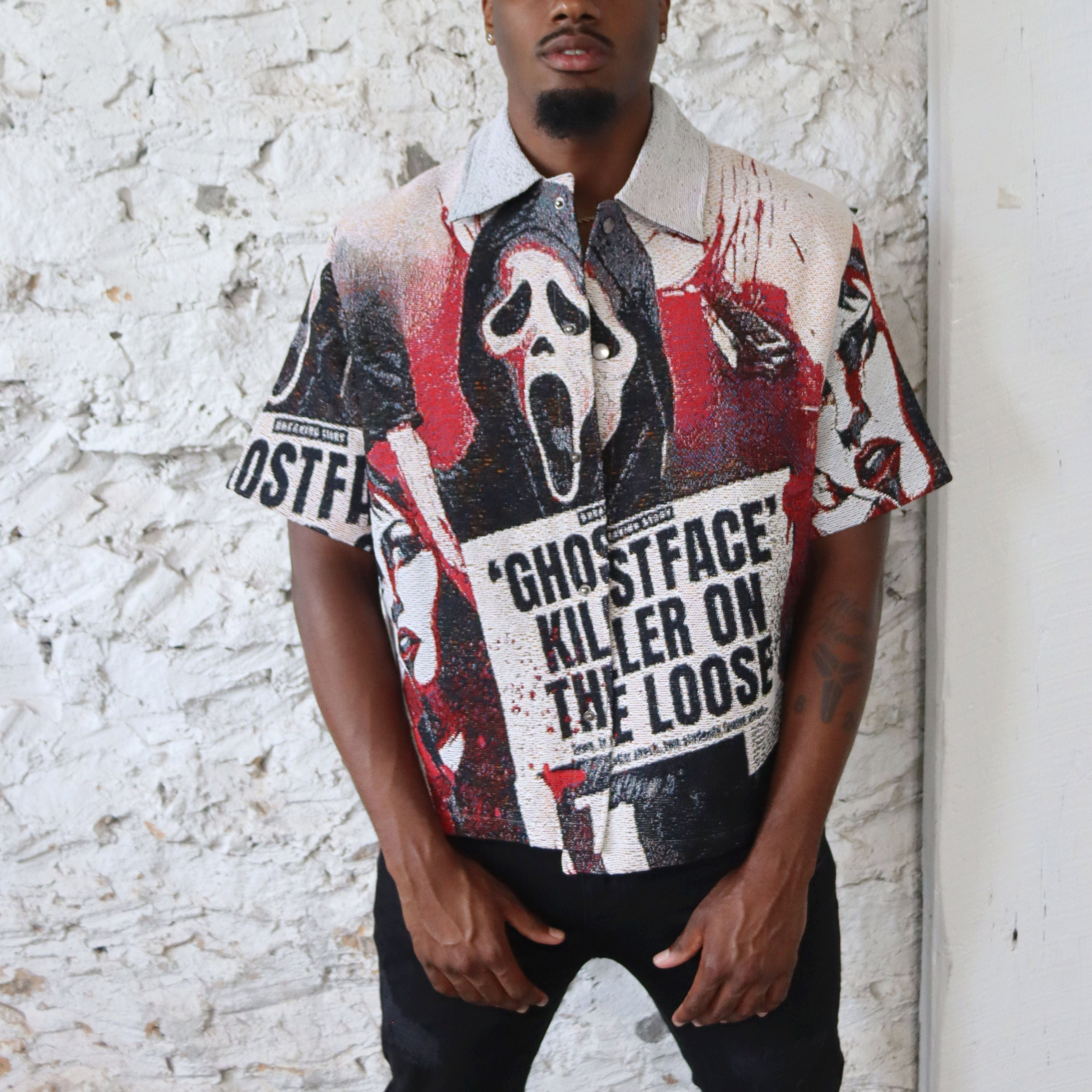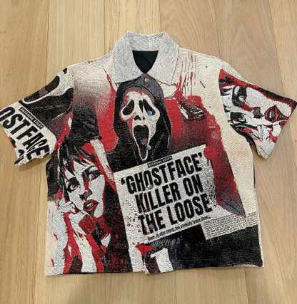 Skull tapestry print short-sleeved shirt jacket