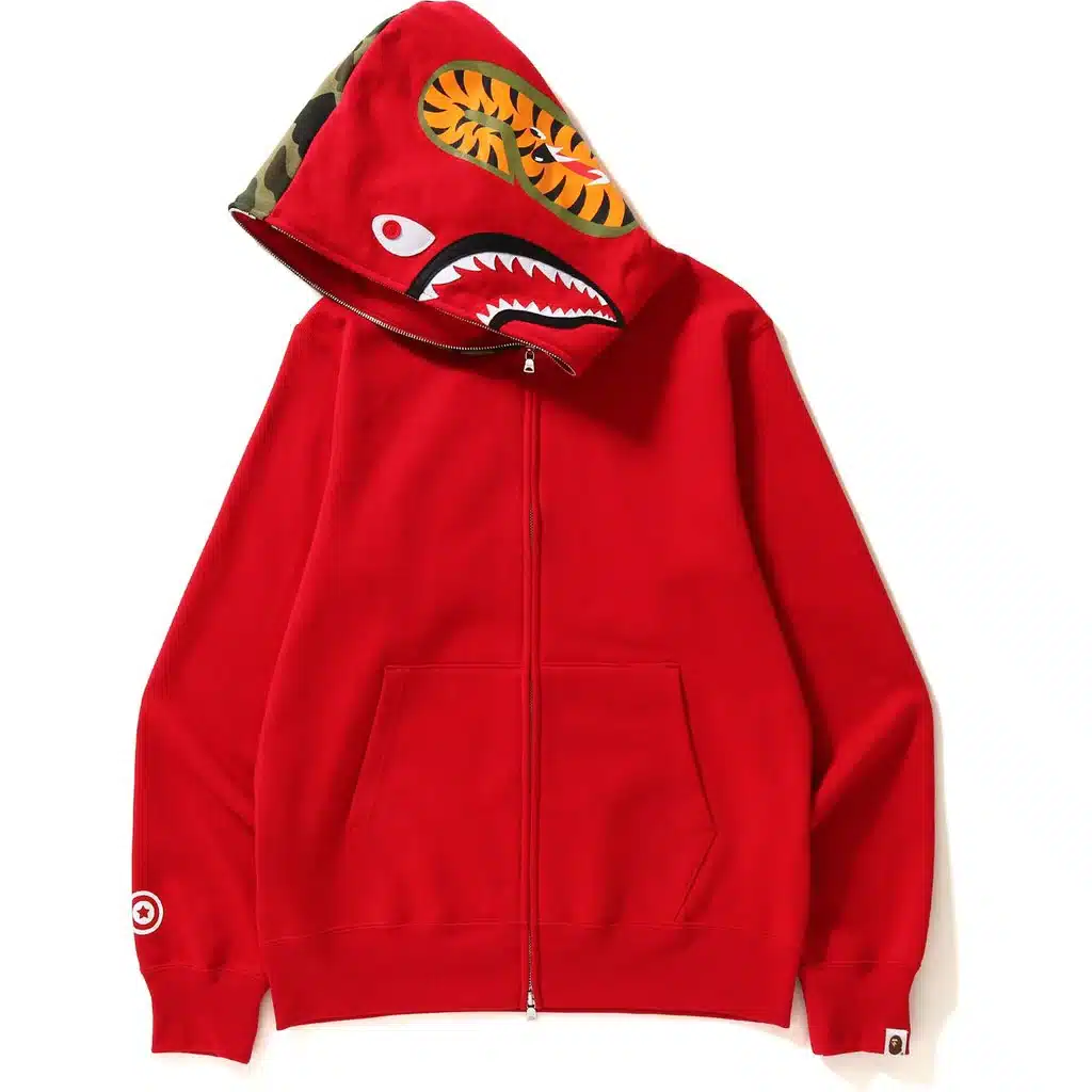 The BAPE Shark WGM Tiger Hoodie is a must-have for any streetwear enthusiast. This iconic hoodie features a large, 3D shark head on the hood, as well as a tiger head on the it. The hoodie is made of 80% cotton and 20% polyester. Making it soft and comfortable to wear. It also features a full-zip closure, a kangaroo pocket, and ribbed cuffs and hem.
