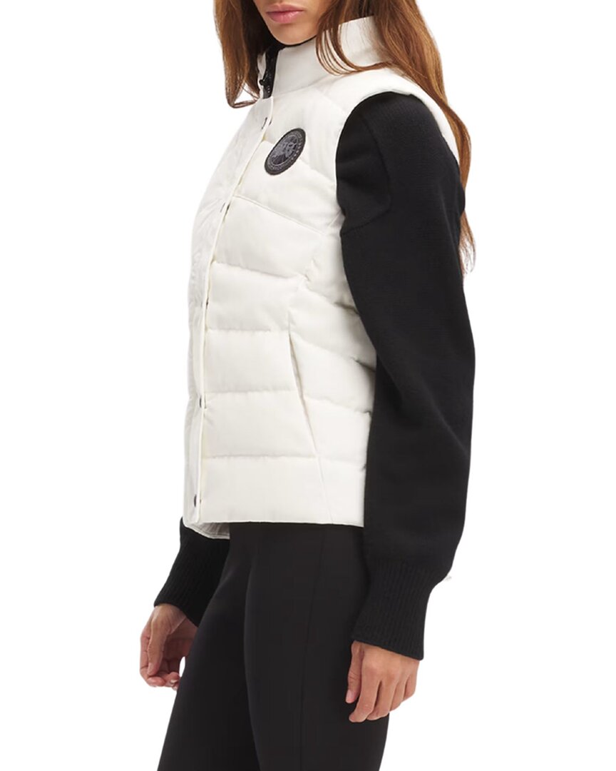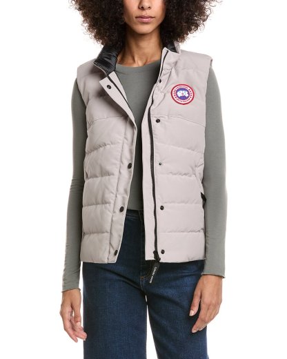 Elevate your outdoor wardrobe with the Canada Goose Freestyle Down Vest. This stylish and functional vest is designed for the modern woman on the go. Featuring a quilted construction, two front flap pockets, and side slits at the hem, the Freestyle Vest in Limestone is both practical and chic. The lightweight design and high-quality materials make it a versatile choice for all your adventures. Whether you're exploring the city or hitting the slopes, this vest will keep you warm and stylish. Pair it with your favorite jeans and boots for a classic winter look. Made in Canada, this vest is a true testament to Canada Goose's commitment to quality and craftsmanship. Add this versatile piece to your wardrobe today and experience the luxury of Canada Goose.