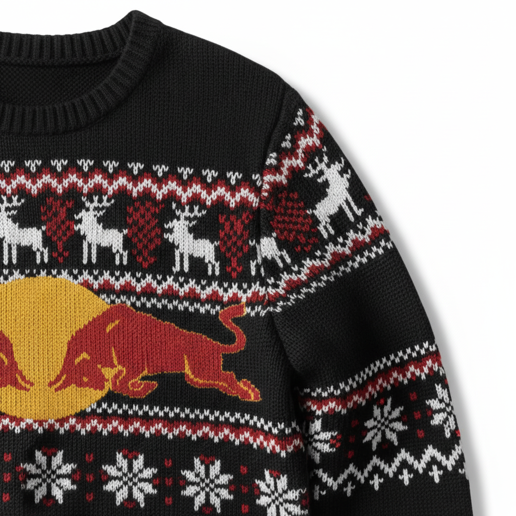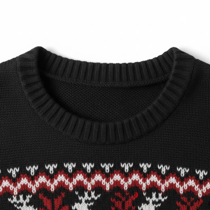• Design Elements: Intricate Snowflake Patterns, Reindeer Motifs, Bold Central Graphic