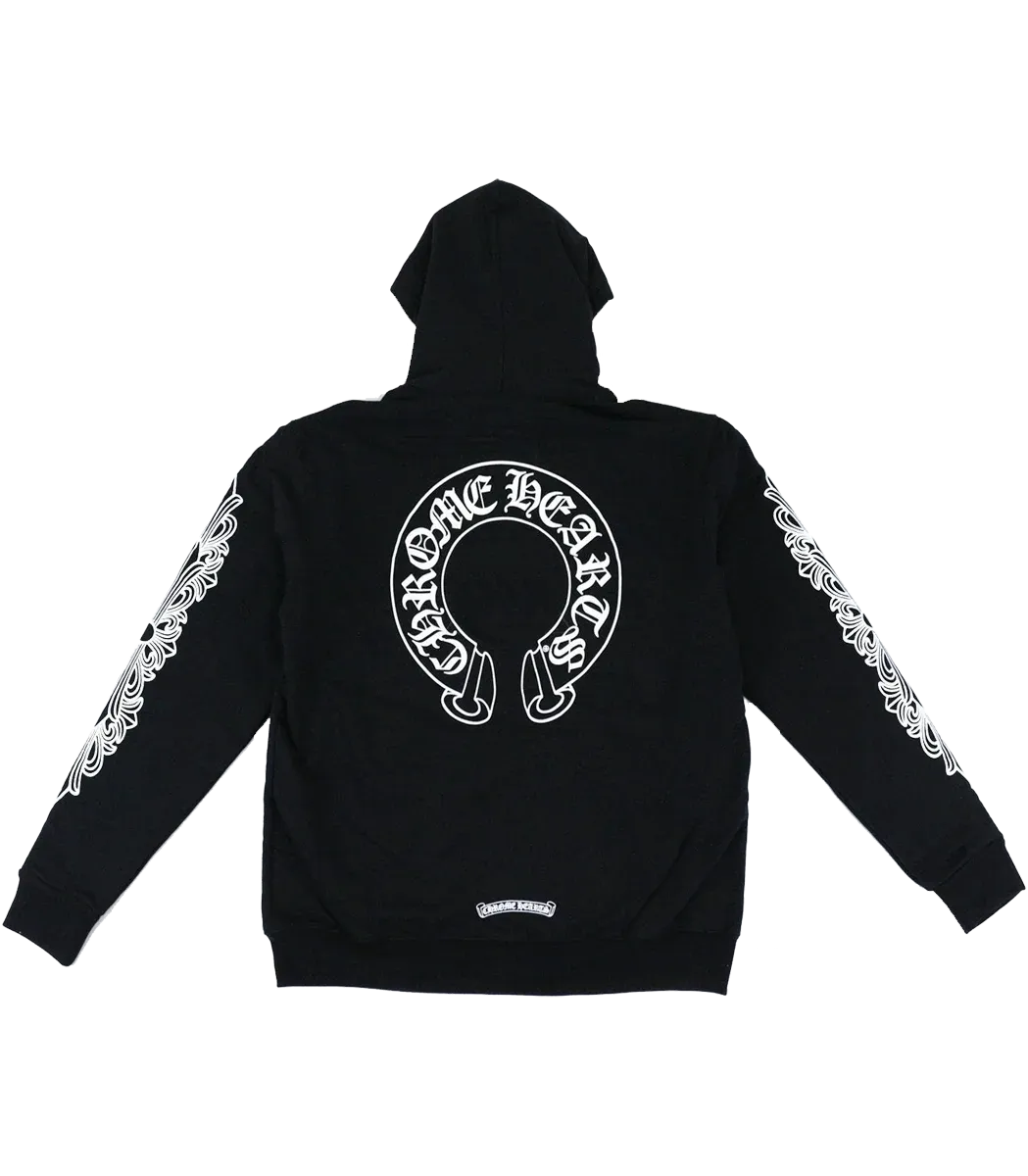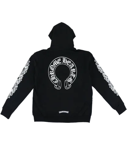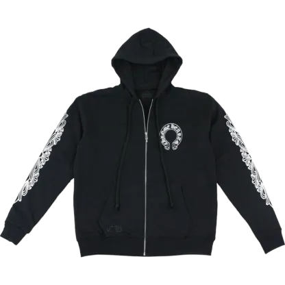 The Chrome Hearts Horseshoe Floral Cross Sleeve Zip Up Hoodie blends edgy street style with intricate detailing. Featuring a bold horseshoe design and floral cross motifs along the sleeves, this hoodie offers a unique mix of gothic aesthetics and luxury. Crafted from premium cotton, it provides both comfort and standout appeal.